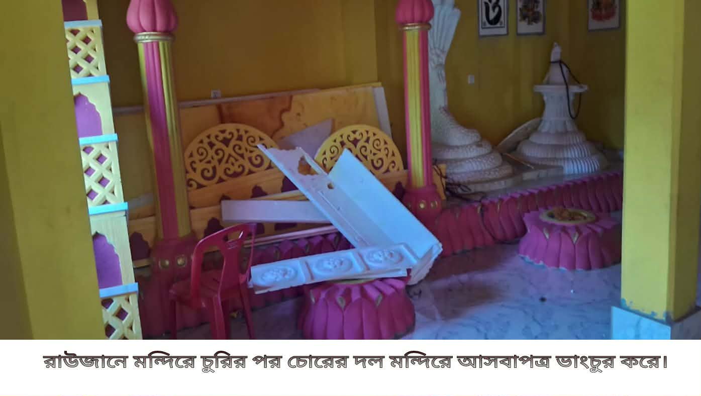 চট্টগ্রামের রাউজানে এক রাতে দুটি মন্দির চুরির ঘটনা ঘটেছে।গত রবিবার দিবাগত গভীর রাতে রাউজান উপজেলার নোয়াজিষপুর ইউনিয়নের ৫ নম্বর ওয়ার্ডে এই ঘটনা ঘটে। জানা যায়, নোয়াজিষপুর ইউনিয়নের ৫নম্বর ওয়ার্ডের দুলাল